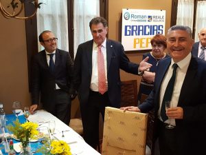 En dicho homenaje estuvieron representados tanto su familia como sus empleados, que nos hicieron sentir el cariño que todos ellos profesan a Don José Román. También estuvieron presentes numerosos amigos del homenajeado, representando a diferentes estamentos de nuestra profesión como los Sres. Sicilia, Peritos de Seguros; numeroso personal de la Compañía Reale encabezada por su C.E.O. Sr. Don Ignacio Mariscal, Sr .Javier Espinosa Director Comercial Nacional, Sr. Ignacio Gómez Director Nacional Canal Agencias, así como los directores territorial Sr. Agustín Ruiz- Escribano y Director de la Sucursal de Almería Sr. Jesús Yeste, entre otros.
